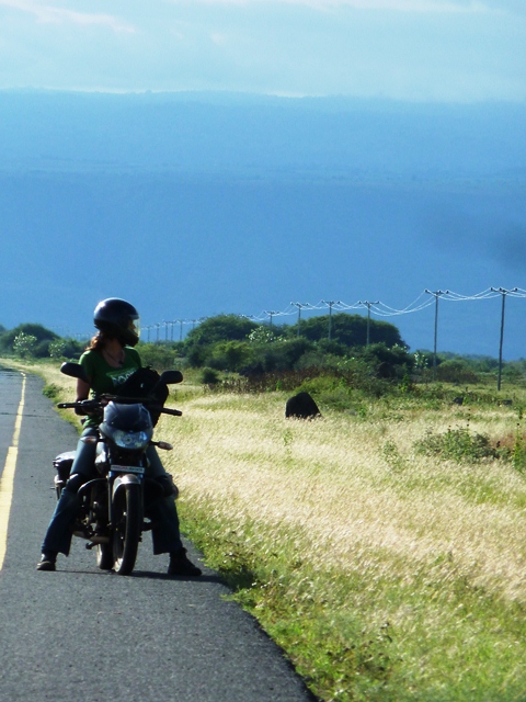 First we have to bribe an immigration officer that was not amused by us missing the border post earlier (see last post). This hassle makes us fall behind schedule and forces us to drive at night into Tanzania. First we encounter a giraffe passing the road. Initially we only see its legs but when we look up there is this huge, majestic animal. Next thing is a road block on our way made up of big stones and thorny tree branches. As the block looks far from anything official I tell my sister that we are not stopping, but just drive through. We find a small space between two stones where our wheels fit and then hit the throttle. While driving the blockade my bike hits a tree branch which I drag along for some time. While we make it through, we still have a frightening 30 km to drive in pitch dark bush land. The thought of bandits blocking the road, obvious up to no good, is more than the excitement we signed up for. Luckily a lovely Tanzanian friend awaits us at our destination and we take a rest for a couple of days to get back our ‘cool’. The rest of the road is just stunning; lush green rolling hills, baobab trees springing out of the red soil, vast empty spaces, and traditional Maasaii walking by the road.