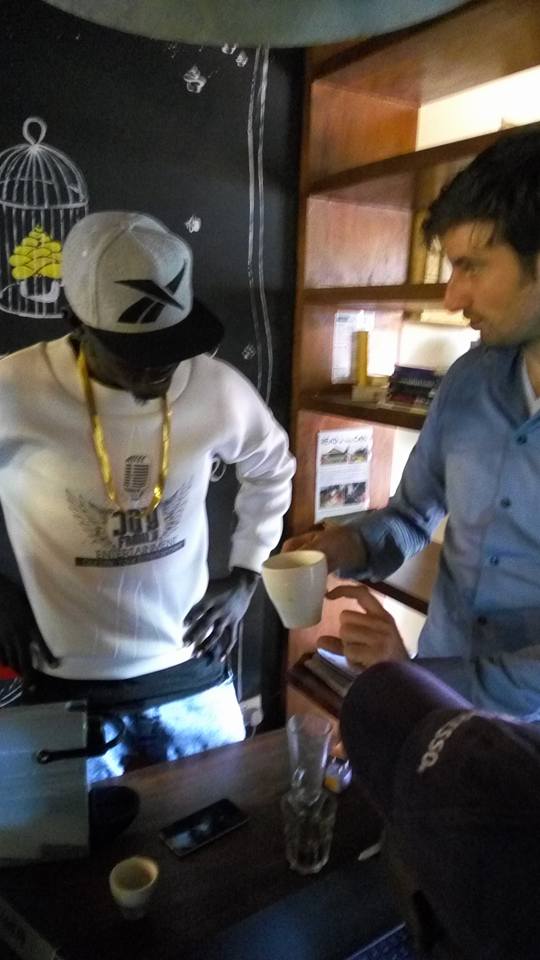 I get in touch with a famous rap band I once met before. As we get together, the inspiration starts flowing as they hear about the amazing story of coffee and how it is sold as authentic South Sudanese in Europe and the US. No war story hitting the news, but extraordinarily delicious coffee hitting the shelves. That’s a future they can picture. I let them taste their own coffee I brought back from the Netherlands and as the caffeine hits the brain, a tune emerges.